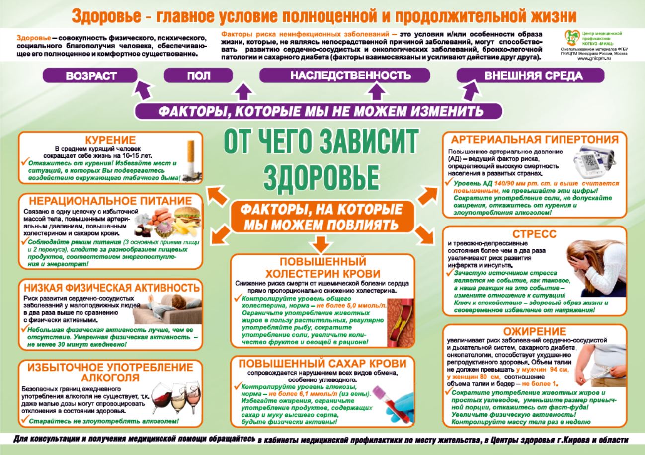 Профилактика неинфекционных заболеваний (НИЗ) и формирование здорового образа жизни (ЗОЖ) основаны на пят ключевых факторах риска: правильное питание, физическая активность, отказ от вредных привычек (курение, алкоголь, ПАВ), контроль веса, снижение стресса и регулярные обследования, что в сумме снижает риск развития диабета, болезней сердца, онкологии и др., обеспечивая долгую и качественную жизнь.